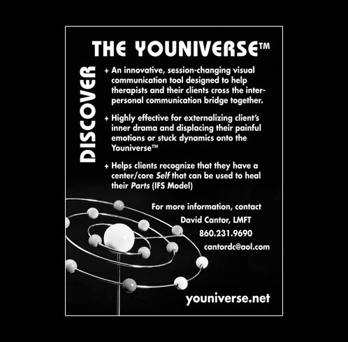 The YOUniverse Feeling Wheel and Self-Leadership tool along with its companion storybook, The Big Bright BallAnswers the Calland guidebook, A Guide to Integrating theYOUniverse in Therapy, takes the essential, yet invisible inner world of thoughts and emotions- your feelings, and makes them visible to the eye where they can be helped and healed by the true YOU-your Big Bright Ball compassionate Self.